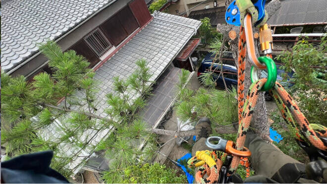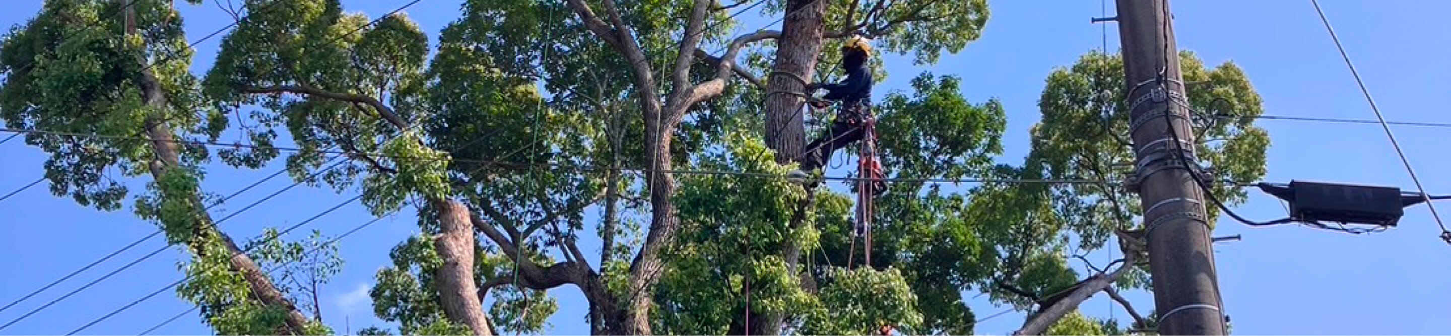 特殊伐採やロープを活用した伐採技術(ツリークライミング)を得意とする専門業者です。空師の技術を駆使し、安全かつ確実な作業をお約束します!